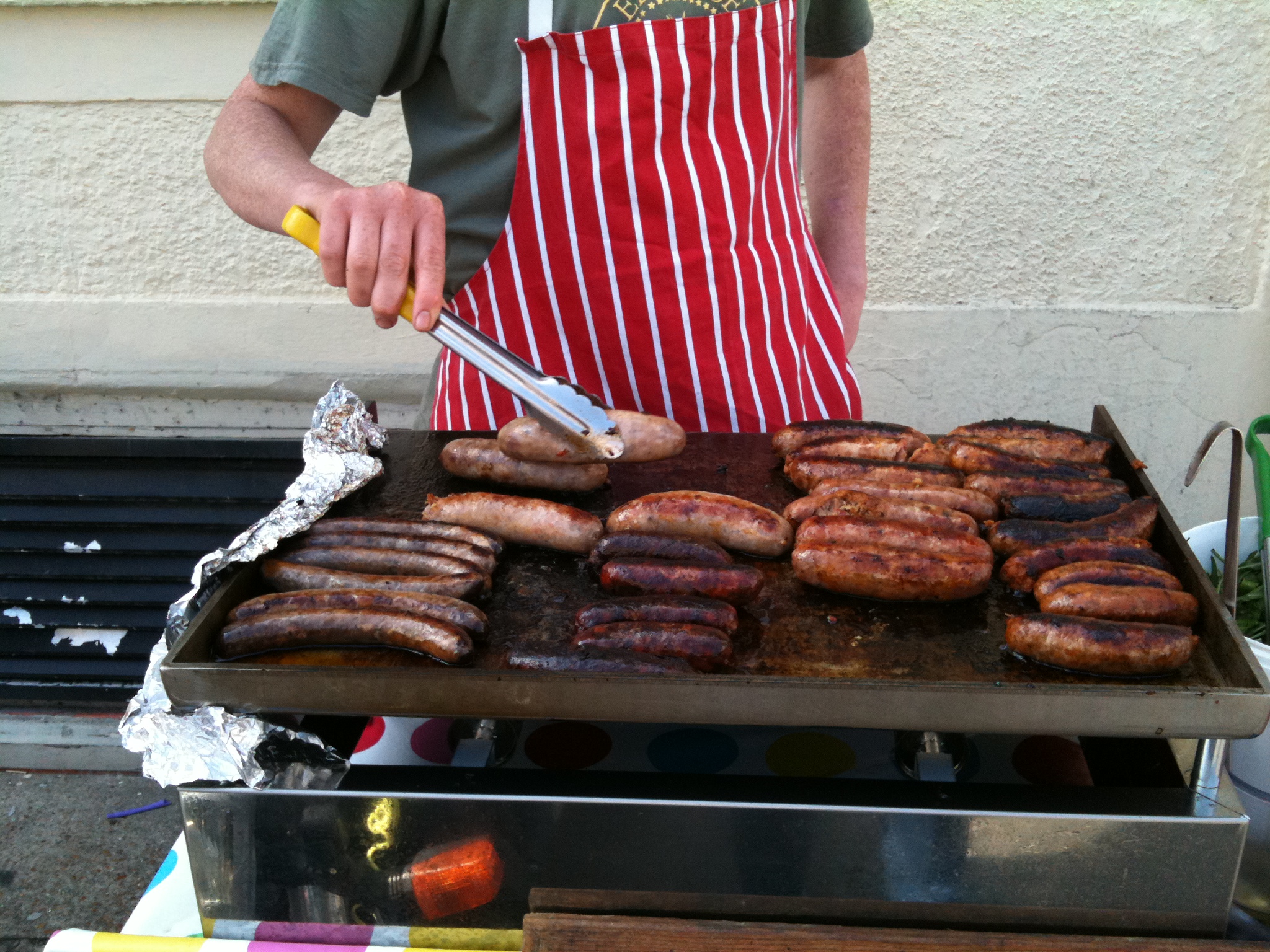 I know these things because Elle Ledden, the head chef of the Sussex Yeoman told me when I attended Elle’s Belles Sausage Pop-up Party at the Sussex Yeoman at the beginning of May. Elle and team, aided by the jolly Ms Rachel Lampen, fed sausage lovers with her premium, 100% free range meat sausages made from natural casings and pure ingredients. Enjoying the proceedings were locals and Brighton Festival visitors alike, including the dashingly moustachioed Andrew Kay, famous food critic and soon-to-be published author of Pretty Boys all in a Row.