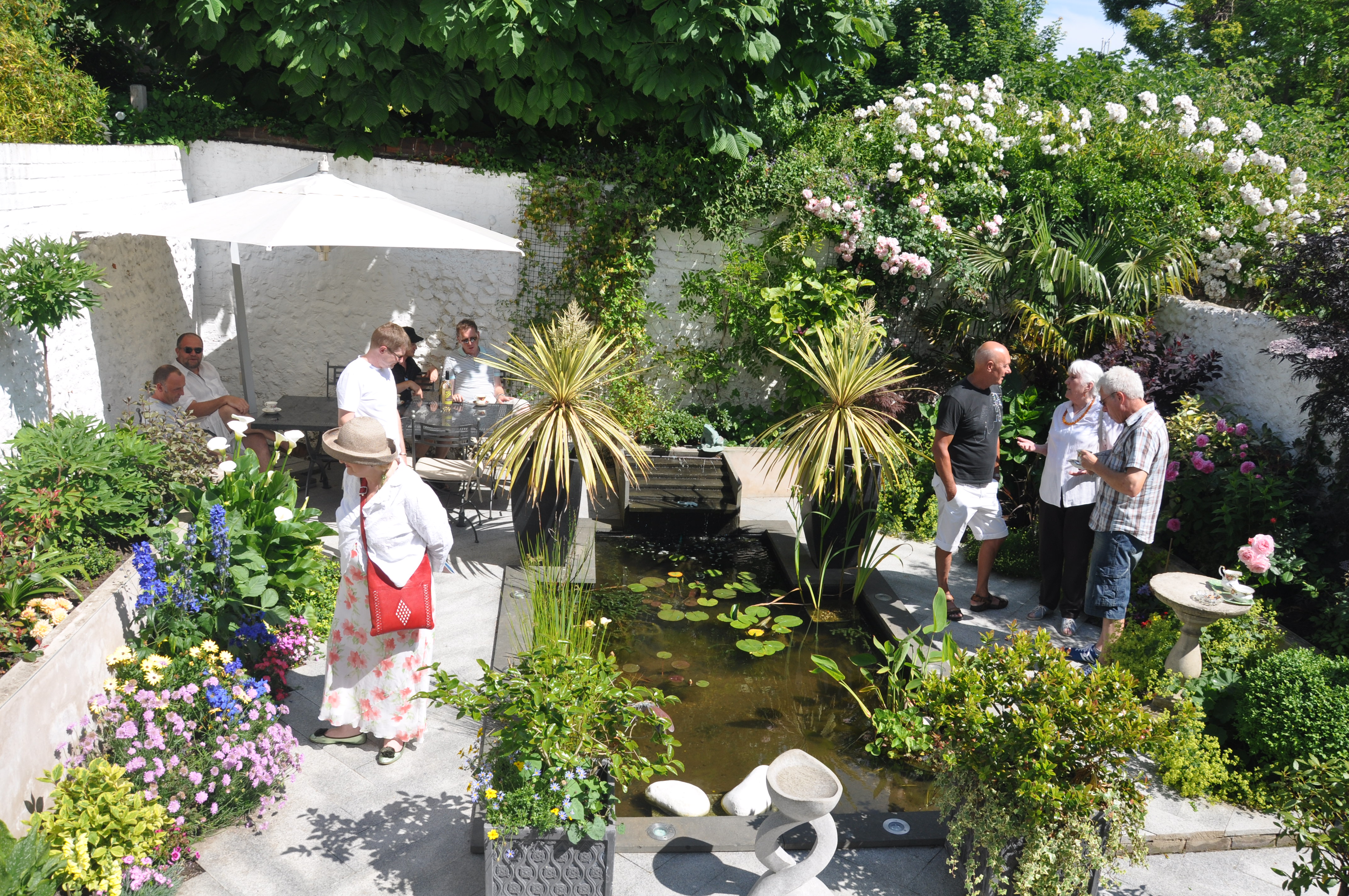 This beautiful small and fragrant courtyard garden belongs to a cottage dating from 1850, near the railway station. Packed with a wealth of plants with scented foliage and flowers, Clematis covers one of the walls. A small pond and an arbour provide a perfect spot to sit and relax.
