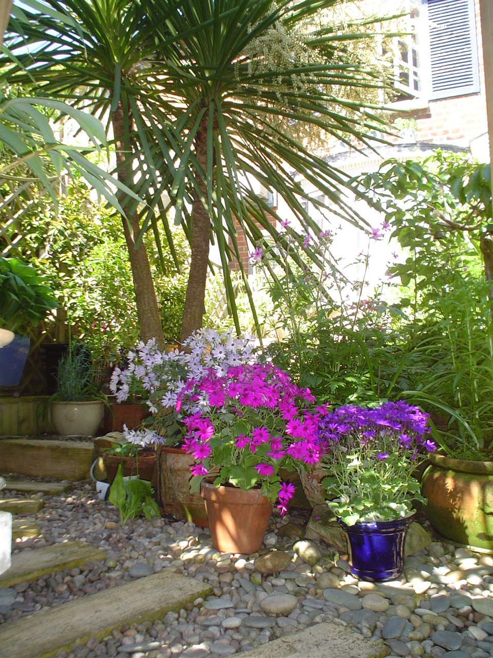 A delightful sun-trap courtyard garden, designed with a central garden pool (unfenced) fed by tumbling water. Planting is in modern raised beds and there is a sunny sitting area.
