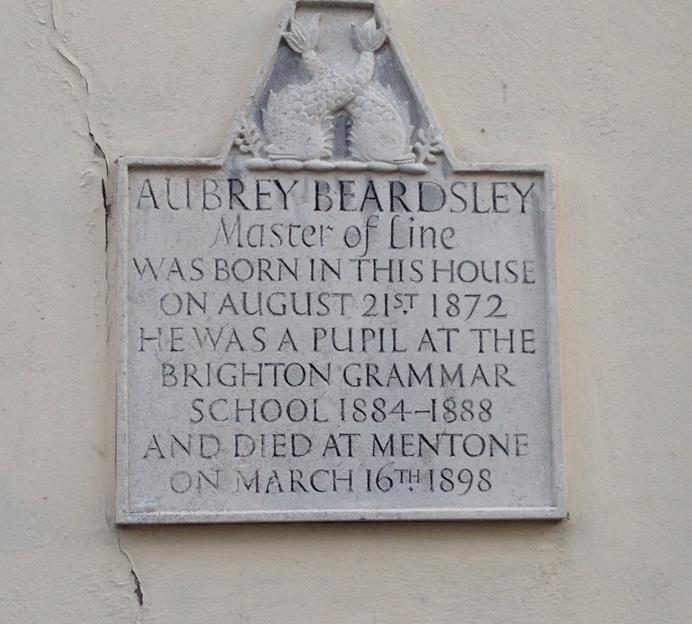 Here is the plaque commemorating Beardsley on the wall of 31 Buckingham Road but it’s not that visible or very well looked after. Brighton is rightly proud of its artistic heritage so perhaps it’s time to make more locally of this particular Brighton-born artist and his exquisite drawings.