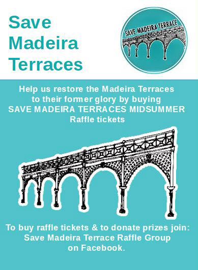As it was so popular and successful the group decided to have a second one, a Midsummer Raffle, to be drawn on 30 June. This time we aim to get 700 prizes and raise £20k for the restoration fund. I am pleased to say Seven Dials is supporting us again, with Ayten Gasson, Seven Cellars and Fullertons selling our raffle tickets and Homage donating a super raffle prize. Other businesses have also pledged prizes and any businesses, artists, crafters or residents who would like to offer a raffle prize, please get in touch via Facebook or pop into one of the shops which are selling our raffle tickets. To see the list of over 400 prizes collected so far, to donate and buy tickets, please join Save Madeira Terraces Raffle Group on Facebook.