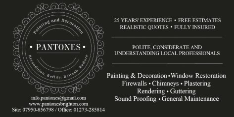 Pantones is a Brighton-based painting and decorating company and they asked one of their clients for feedback. Tessa Gunputh writes . . .