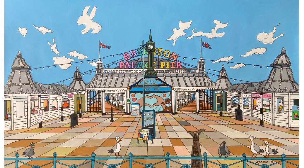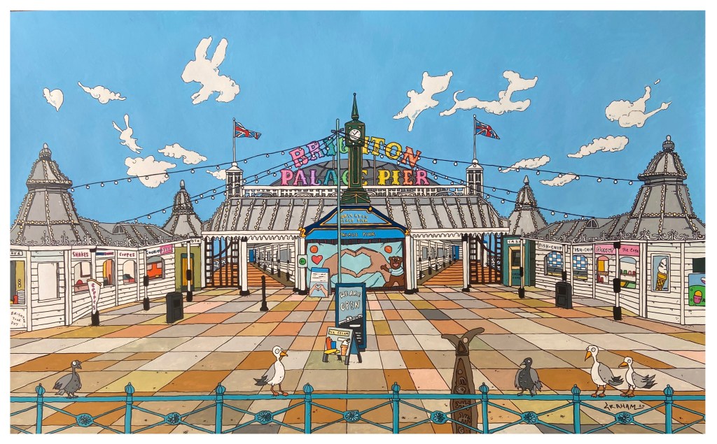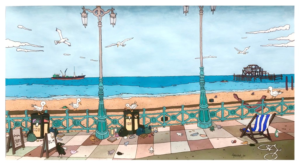 Graham Cameron was a little more productive. He took the time to produce a series of illustrations that looked at his lockdown and the impact of Covid-19 on the arts. He took inspiration from his surrounds and created illustrations of the famous landmarks, including the Palace Pier, the Royal Pavilion and the Dome. “I’ve worked at Brighton Dome & Brighton Festival for 21 years, and during furlough I re-connected to the other version of me – the artist. I found myself drawing everyday as a way to express how the pandemic was personally affecting me but also how I saw the outside world unfolding from the safety of my lockdown caravan.”