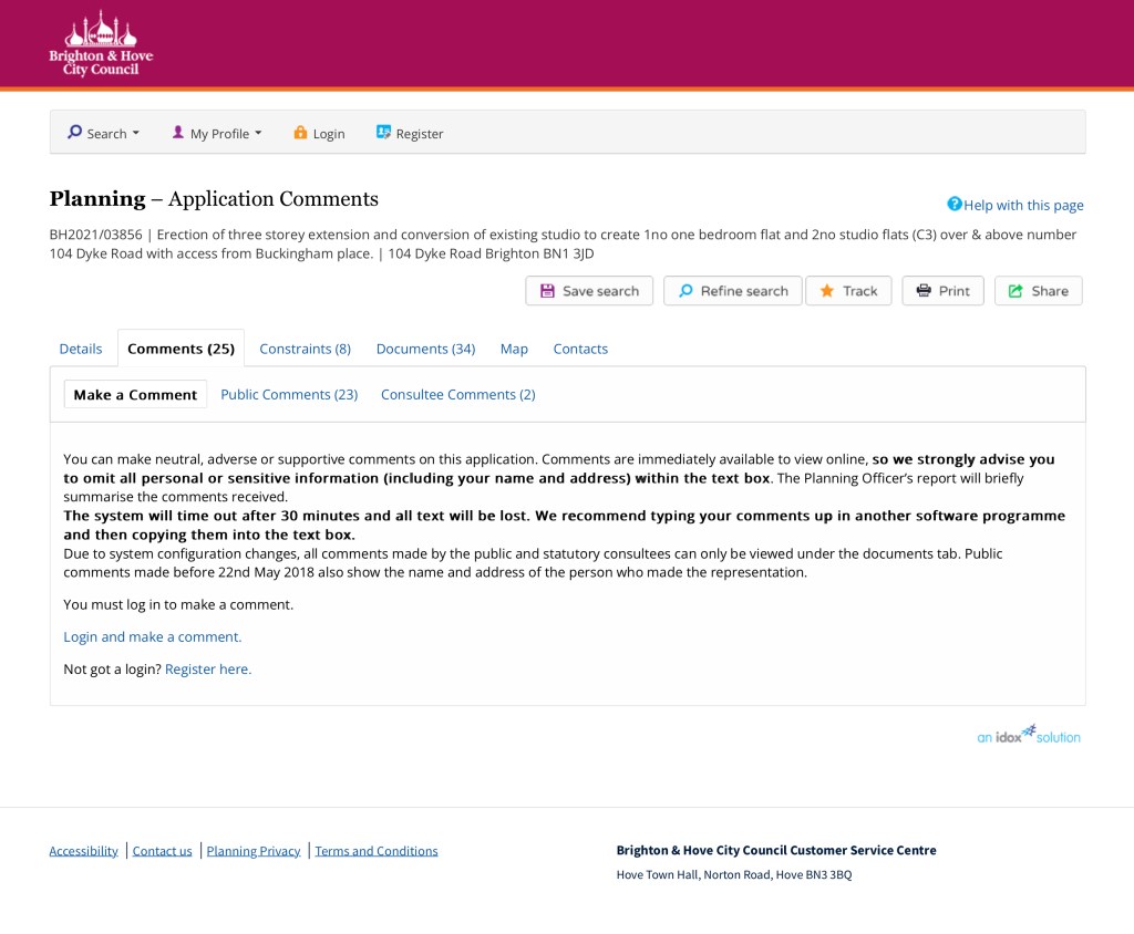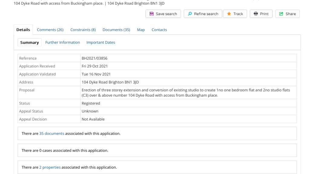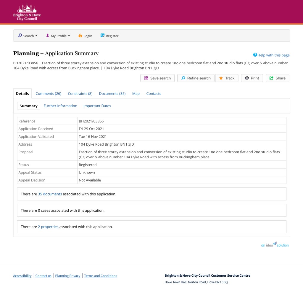 The Application no is BH2021/03856 – which must be quoted in any correspondence. (see pic 1)