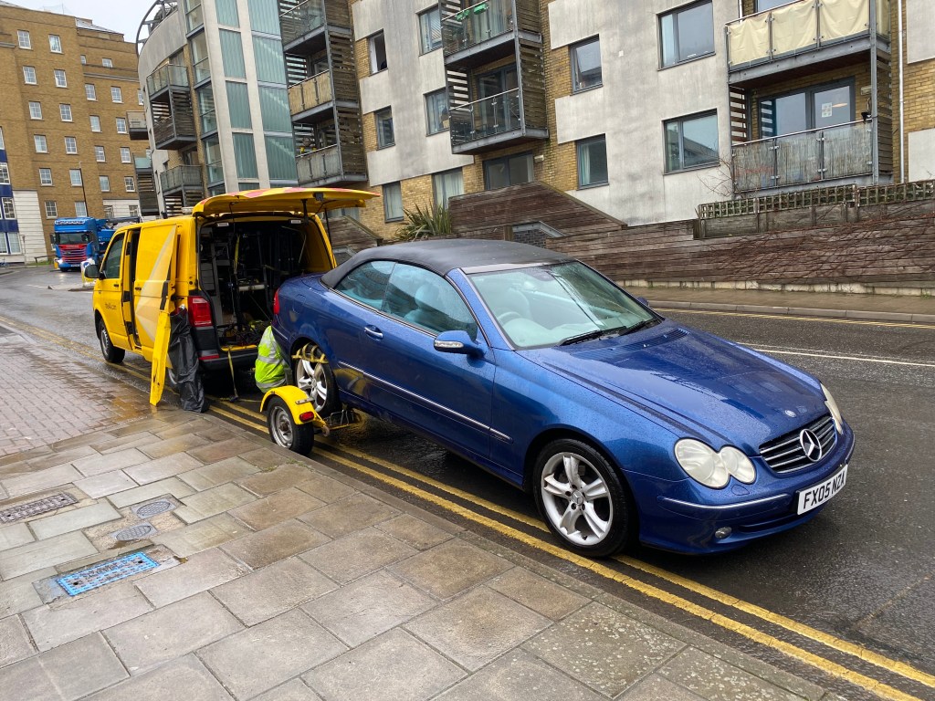 We’re looking at my very fine Mercedes CLK 200. It’s, of course, the “Avantgarde” model which isn’t to say it’s experimental, radical, or unorthodox nor is it characterised by aesthetic innovation and initial unacceptability (thank you Wikipedia) but it is very lovely. It’s metallic blue with contrasting light leather interior, a top of the range digital sound system. Electric everything. It’s also not well. Really not well. OK, it’s dead. The car is dead.