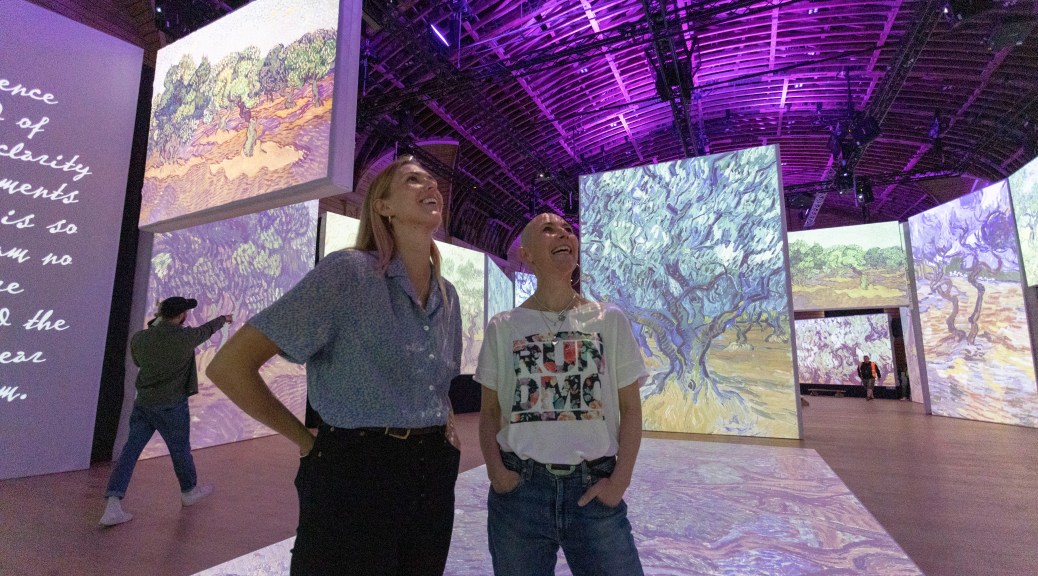 Starry, starry night, Paint your palette blue and gray….Gilly Smith and Brighton poet and artist Rosy Carrick to The Dome to immerse themselves in the world of Vincent Van Gogh