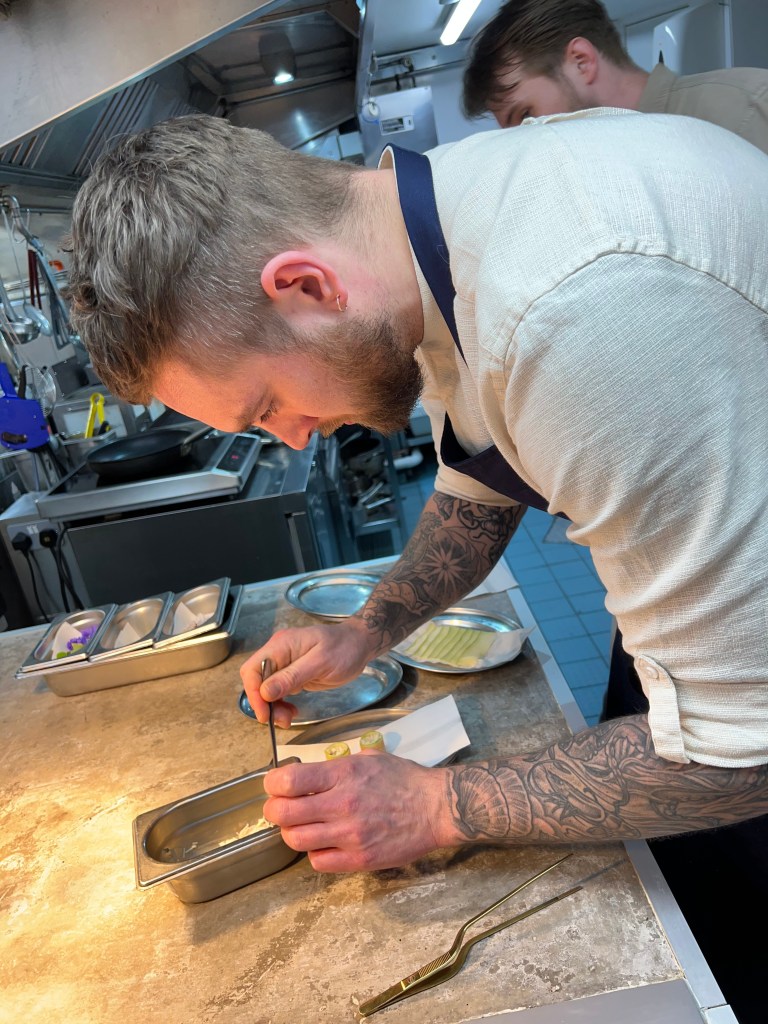 Tom Stephens at dilsk, Brighton’s new pearl in the fine dining scene at Drake’s on Kemptown’s seafront, is exactly that chef. Fresh from 64 Degrees where he worked as head chef for four years with Great British Menu winner, Michael Bremner, he and Maddy Riches from Bremner’s other restaurant, Murmur, have combined their cheffy super talent and front of house warmth to bring us a new fine dining experience that’s all about ethical sourcing.  And yes, Tom even learned to cook at his grandmother’s side…