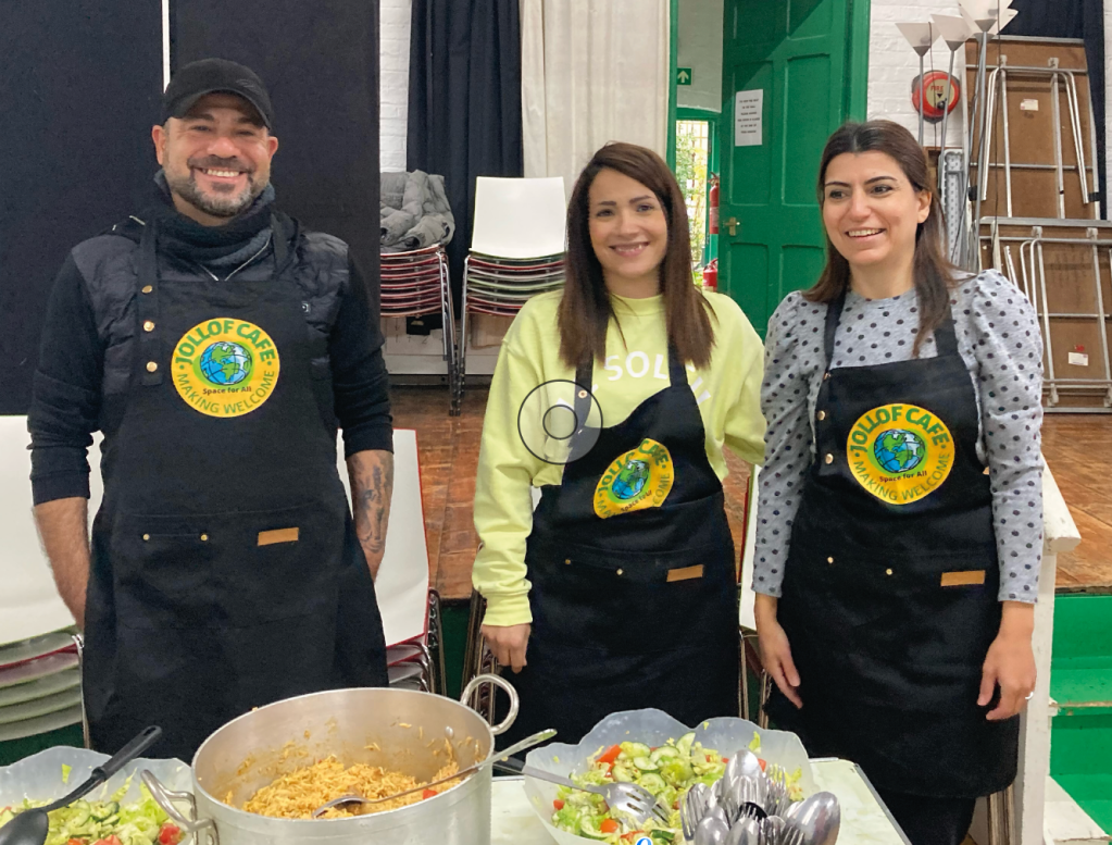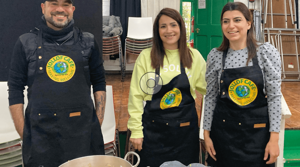 We’re lucky here in this part of  the world – there are fantastic organisations such as The Launchpad Collective who are doing real things to help refugees with real tools such as work and language. And here at the West Hill Hall, the every Wednesday morning The Jollof Cafe takes over and… What’s the Jollof Cafe?