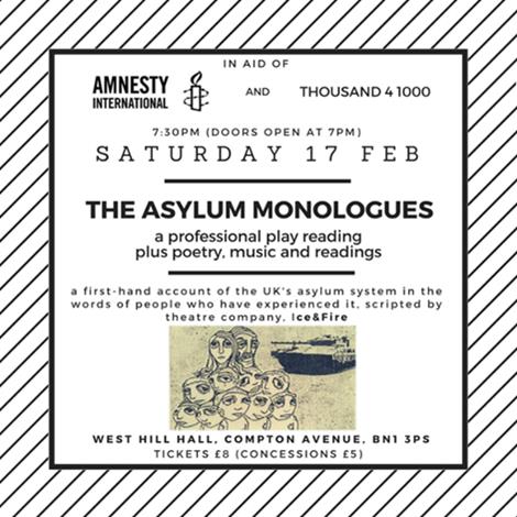 THE Asylum Monologues is a first-hand account of the UK’s asylum system in the words of people who have experienced it. It was first scripted from verbatim accounts and launched in 2006 by Ice and Fire, a theatre company whose members are Actors for Human Rights. This performance at West Hill Hall on Saturday 17 February is a rehearsed reading by professional actors Kate Dyson, Trevor Jones, Alexa Povah and Glyn Sweet. Continue reading The Asylum Monologues
