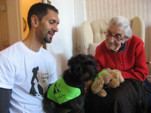 “I get an awful lot out of it, “ says Paul, “and Peg loves all the attention! The senior citizens enjoy petting Peg. Dogs are, of course, naturally therapeutic and Peg’s gentleness and responsiveness seems to relax and unlock them in some way. The elderly residents reminisce about the past in a way which I find fascinating. Peg’s presence means we have an instant topic of conversation, an instant bond – she facilitates the connection between us and the talk just flows. She’s also rather partial to the biscuits they reward her with!”